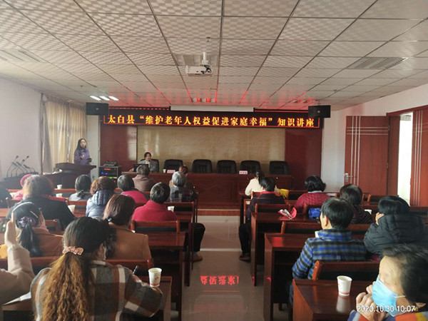 为深入学习全面领会切实贯彻党的十九大精神,进一步做好老龄工作,推进“敬老月”活动深入开展,提升老年朋友维护自身权益的能力,不断增强老年人的维权意识,促进家庭和谐幸福。10月30日,太白县老龄委、太白县计生协会采取以会代训的方式联合举办“维护老年人权益,促进家庭幸福”知识讲座。