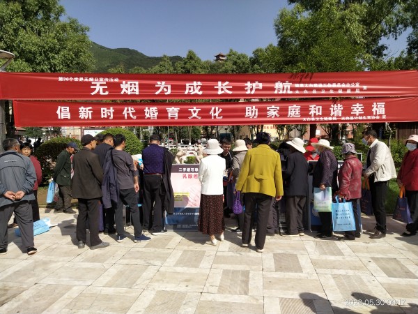 为了庆祝中国计生协成立43周年,5月30日上午,太白县卫健局、县计生协会联合中国人寿保险太白分公司、咀头镇计生协会,组织县疾控中心、县医院在街心广场开展了“5.29会员活动周”暨“世界无烟日”集中宣传服务活动。