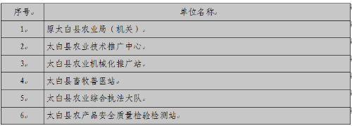 本部门2019年已更名为太白县农业农村局,相关内设机构随之调整。