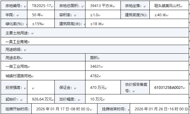 TB2025-017号地块:2026年01月17日08时00分至2026年01月26日16时00分;